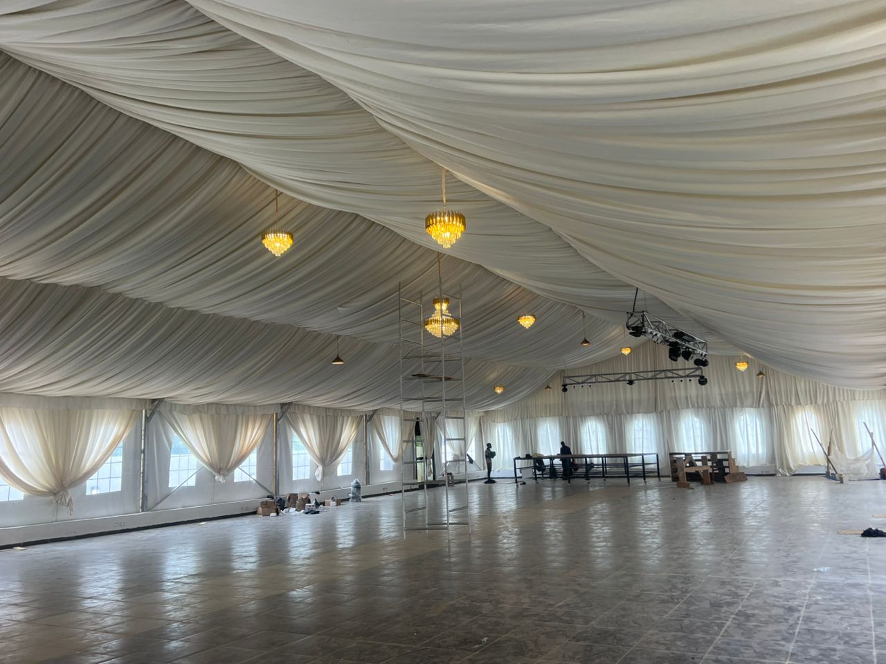 Marquee tent has a wide span width from 3m to 70m. The bay distance is 3m to 5m and there is no limit for the length. The marquee tent is the most widely used tent series for each area. And the glass walls, doors, ABS walls, air condition, floor and lighting are available.