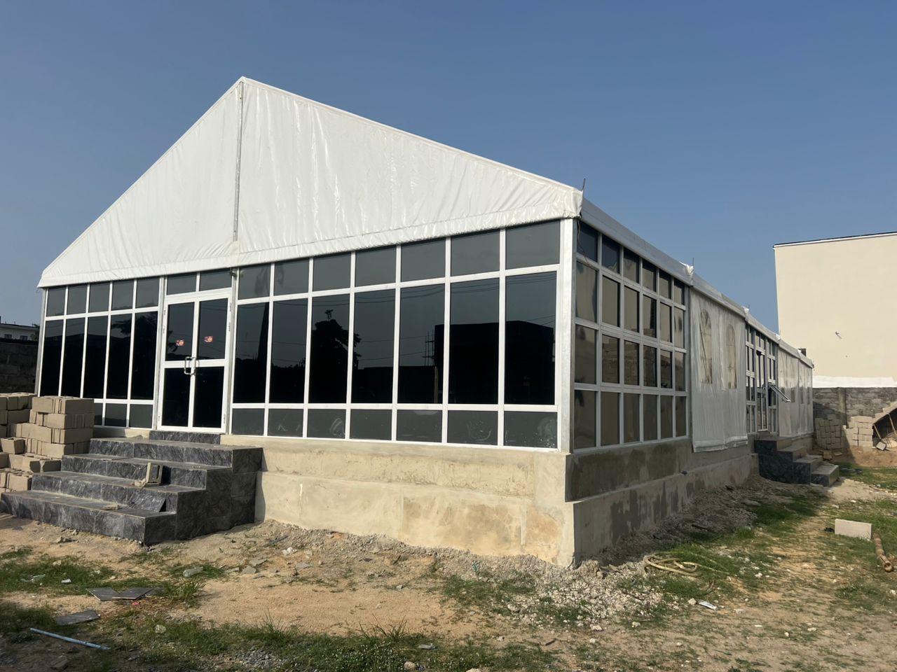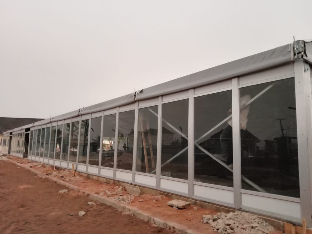 | Cover material | Density: 650g/sqm- 850g/sqm; White PVC For Roof and Side Walls |